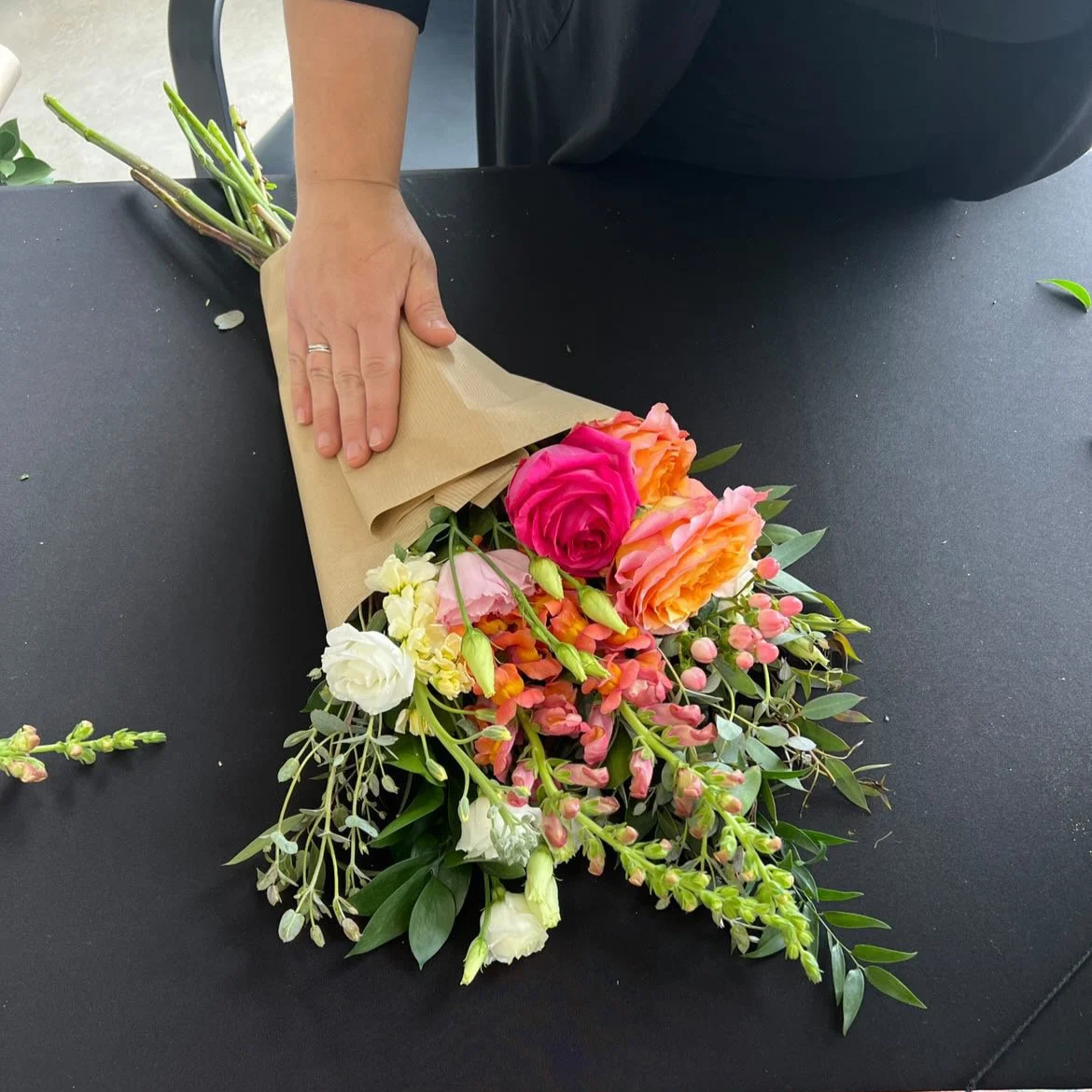 We take care of all the details, including a curated color palette of blooms, a variety of umbrellas and rug options to match the vibe, and assist on site with professional arranging and wrapping.